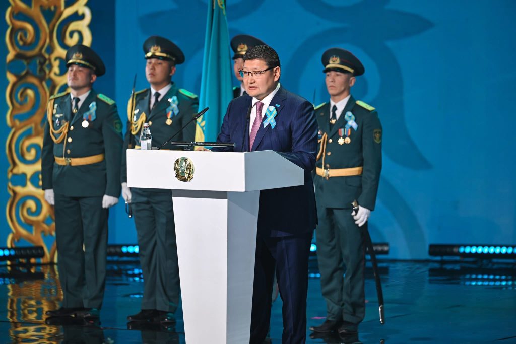 Мерекелік шараға Абай облысының әкімі Берік Уәли арнайы қатысып, өңір жұртшылығын қос бірдей тарихи маңызы бар мерекемен құттықтады. Сөз сөйлеу барысында аймақ басшысы елдің тыныштығы мен қауіпсіздігін қамтамасыз ету жолында аянбай еңбек етіп жүрген барлық әскери қызметшілер мен құқық қорғау органдарының өкілдеріне алғысын білдірді.