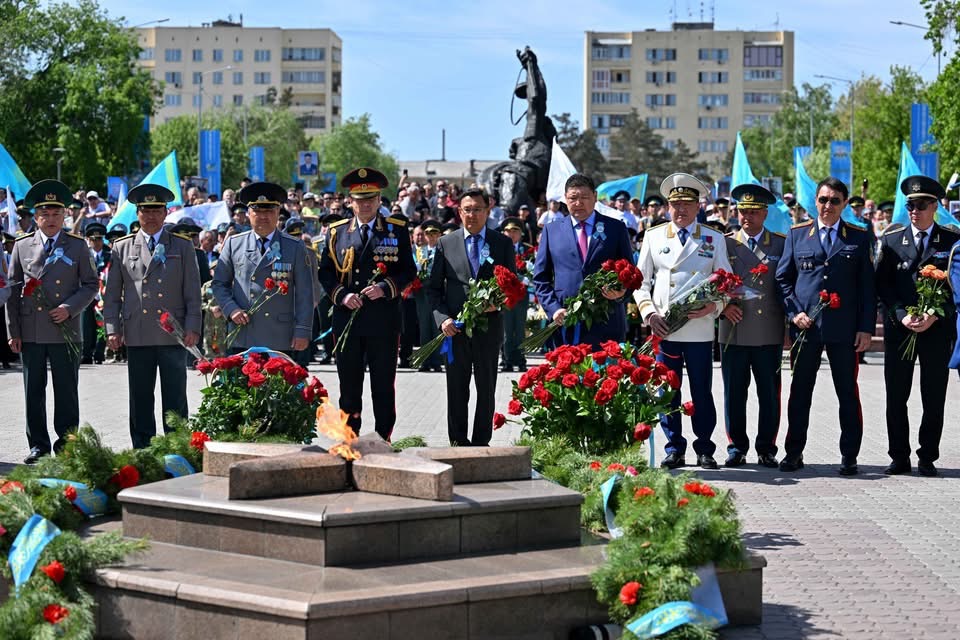 Облыс орталығындағы Жеңіс саябағында «Мәңгілік алауға» гүл шоқтарын қою рәсімі өтті. Оған аймақ басшысы Берік Уәли, ардагерлер, құқық қорғау органдары мен әскери бөлімдердің өкілдері, «Жас Ұлан» әскери мектебінің курсанттары қатысты.