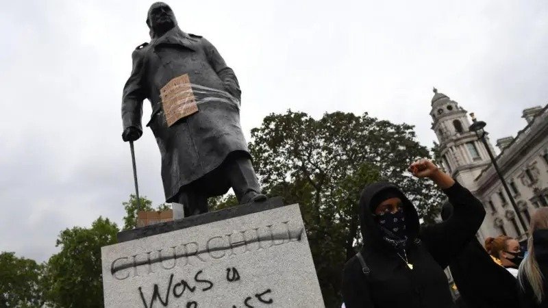 Лондондағы Черчилль мүсініне шыққандар қылмыстық жауапкершілікке тартылады
