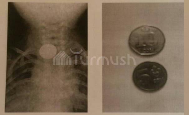Ош облустар аралык балдар клиникалык ооруканасынын ЛОР бөлүмүндөгү дарыгерлер 5 жана 10 номиналындагы тыйындарды жутуп алган 3 жаштагы наристенин өмүрүн сактап калышты.