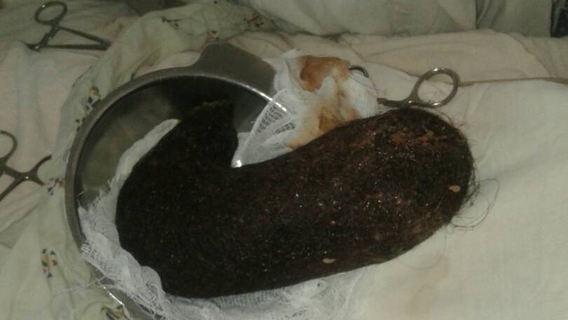 Дарыгерлердин айтымында, ноокаттык окуучу кыз кусуп баштагандан кийин ата-энеси ооруканага жеткирген. Топтолгон чач 5-6 жылдык болушу мүмкүн. Операциядан кийин кыздын абалы жакшыра баштады.