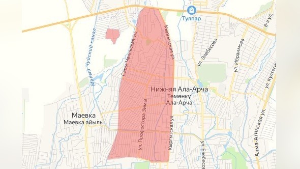 Чектөө боло турган аймак: Киргизская—Саадаев—Бельская—Сары-Челек—Бухара—Киргизская көчөлөрү.
