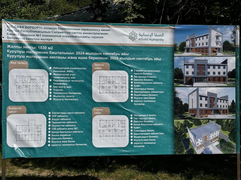№1 шаардык клиникалык оорукана да артта калган жок. Сентябрда бул жерде жаңы терапиялык корпус курула баштады – төрт кабаттуу, лабораториялары, УЗИ, ЭКГ, кароо кабинеттери, 36 керебетке ылайыкталган терапия бөлүмү жана интенсивдүү терапия залы болот. Долбоорду кайрымдуулук фонду каржылап жатат. Ушул эле комплексте Гемодиализ борборун ачуу пландалууда.