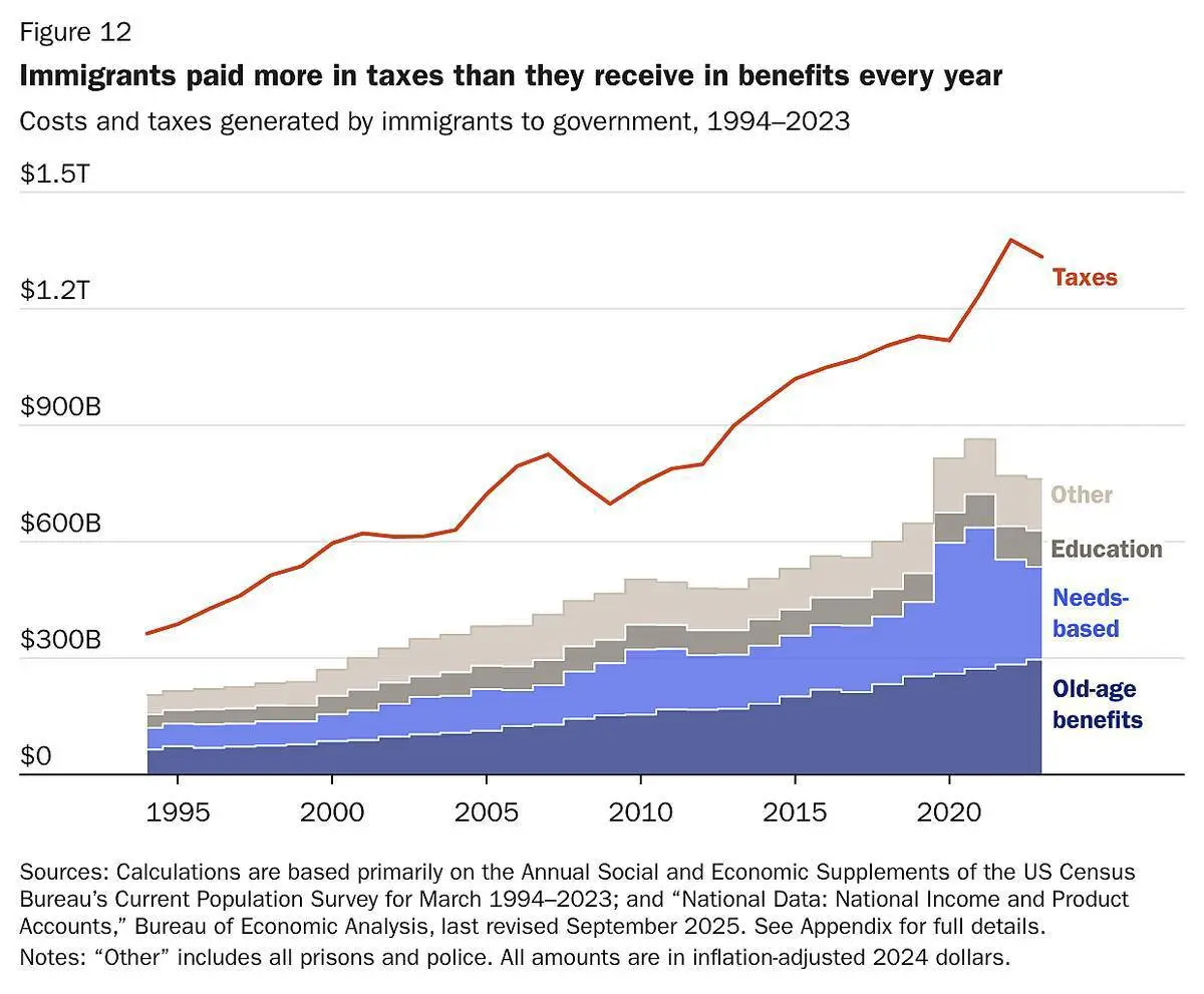 Аналитики подчеркивают, что этот положительный фискальный эффект создают как иммигранты, находящиеся в стране на законных основаниях, так и те, кто не имеет официального статуса.
