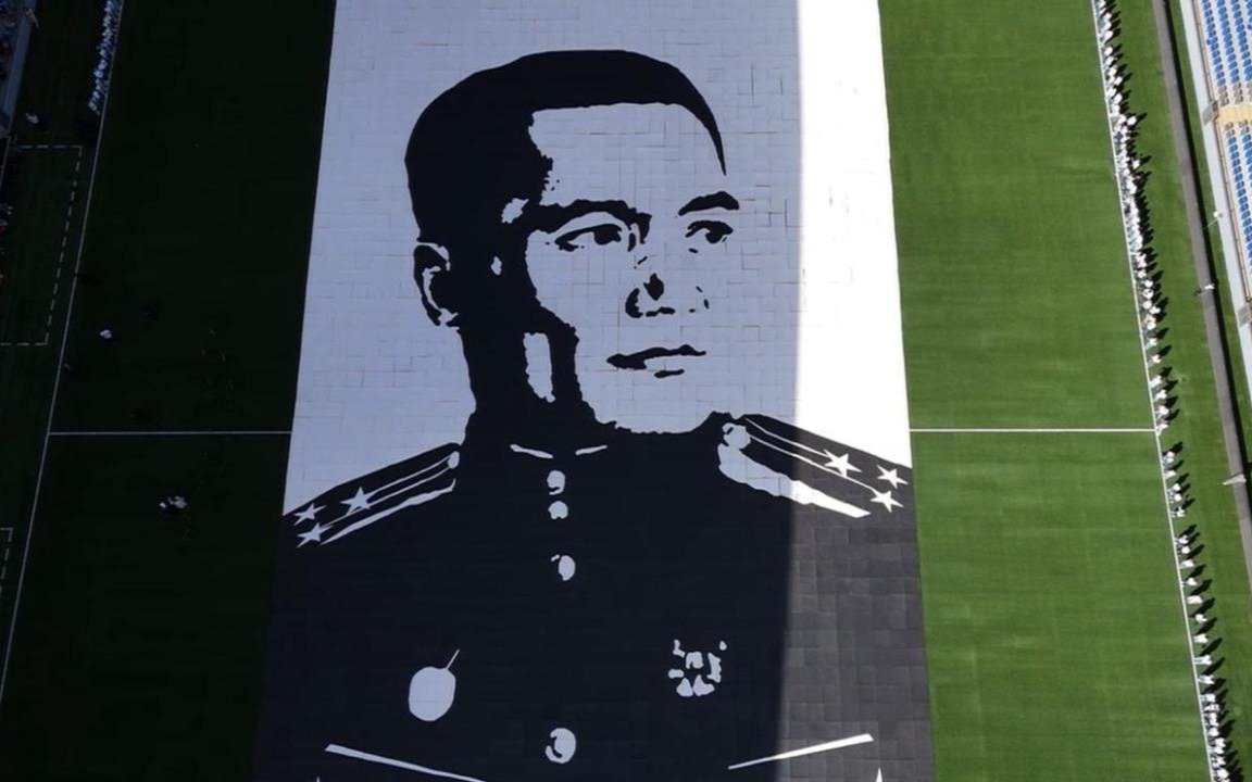 Гигантское изображение героя войны собрано из сотен детских работ и занимает площадь 2736 квадратных метров.