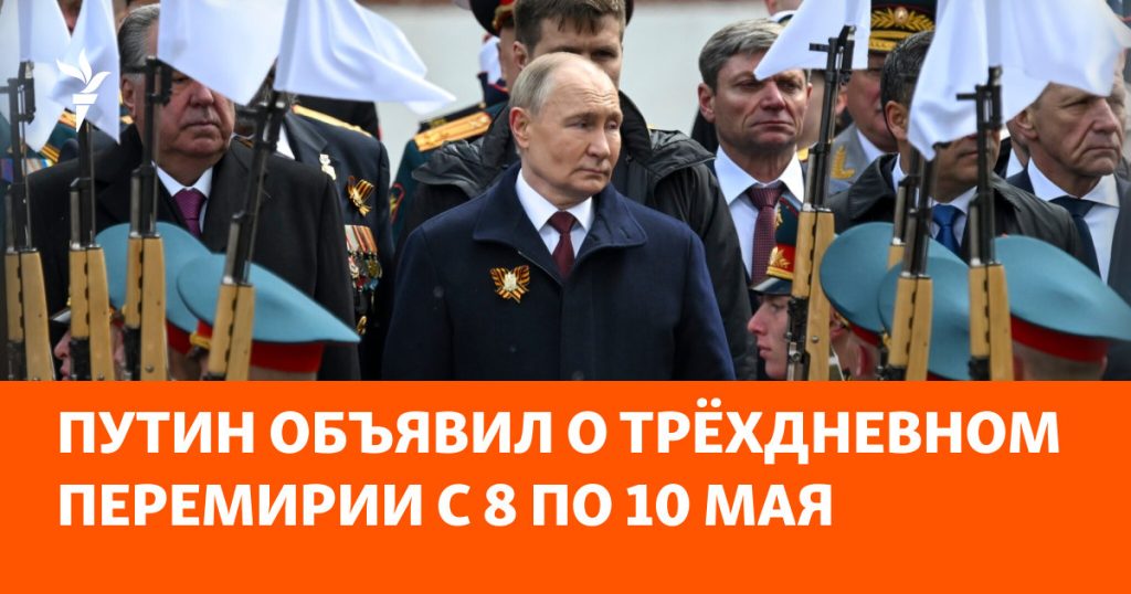 Об этом сообщило информационное агентство EurasiaPluse. Президент России Владимир Путин объявил о приостановлении боевых действий в Украине с 0:00 8 мая до 0:00 11 мая. Это решение обусловлено гуманитарными соображениями в связи с 80-летней годовщиной Победы в Великой Отечественной войне, события которой будут отмечаться военным парадом в Москве 9 мая с участием Путина и глав около 20 государств, включая председателя КНР Си Цзиньпина.