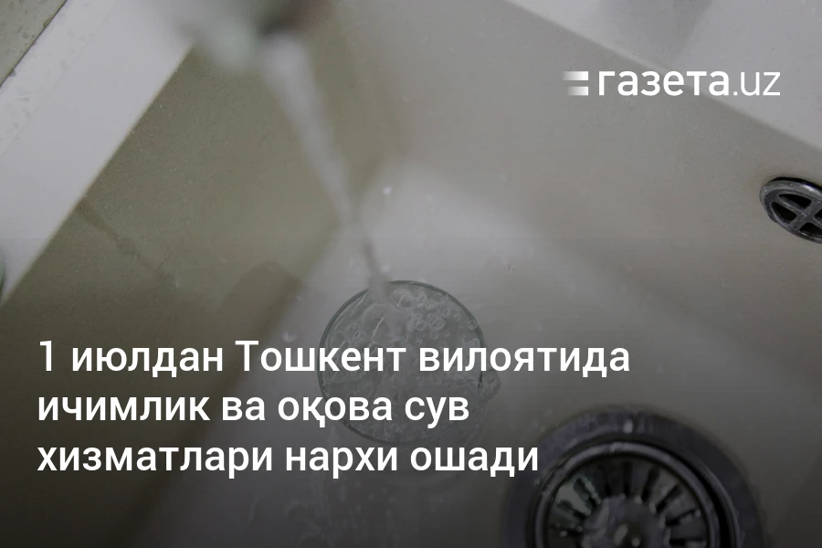 Тошкент вилоятида 1 июлдан бошлаб ичимлик ва оқова сув хизматлари нархи оширилади. Бунда аҳоли учун бир метр куб ичимлик суви нархи 2600 сўмни, юридик ташкилотлар учун эса 15 000 сўмни ташкил этади.