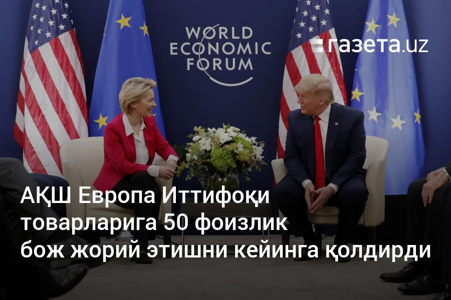 АҚШ президенти Дональд Трамп Еврокомиссия раҳбари Урсула фон дер Ляйен билан суҳбатдан сўнг Европа Иттифоқидан импорт учун 50 фоизлик божлар жорий этилишини 9 июлгача кечиктиришини маълум қилди.