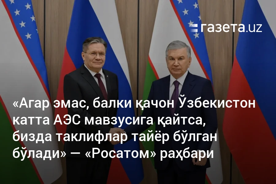 «Агар эмас, балки қачон Ўзбекистон раҳбарияти катта АЭС мавзусига қайтганида, бизда аллақачон таклифлар тайёр бўлади — нафақат ушбу бўлажак объектларнинг қиёфаси бўйича, балки Ўзбекистонда маҳаллий ишлаб чиқарувчилар томонидан маҳаллийлаштириш билан боғлиқ молиявий ва ташкилий масалалар бўйича ҳам, катта ҳажмдаги ишлар бўйича», — деди Алексей Лихачёв.
