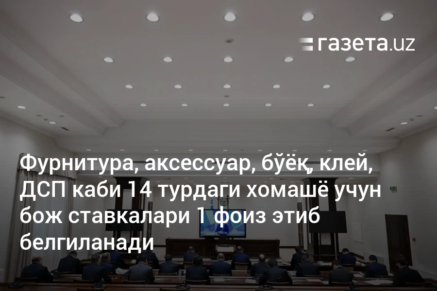 Ўзбекистонда фурнитура, аксессуар, бўёқ, клей, ДСП каби хомашёга божлар ставкалари камайтирилади. Бу ҳақда 26 май кунги маҳаллий саноатни ривожлантириш бўйича видеоселектор йиғилишида президент Шавкат Мирзиёев маълум қилди.