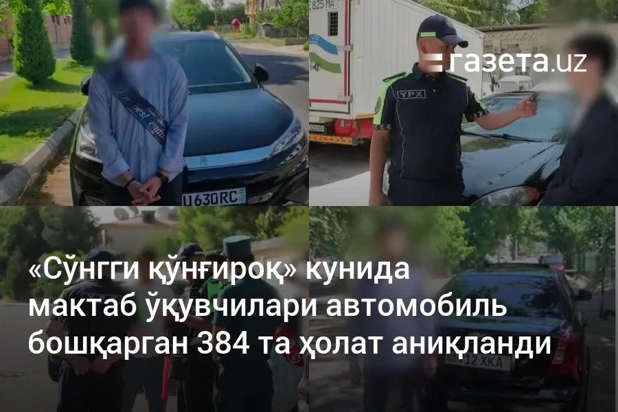 ЙПХ ходимлари жойларда мактаб ўқувчиларининг рухсатномасиз машина бошқарган ҳолатларини аниқлади. ЙҲХХ матбуот хизмати хабарига кўра, 14:00 гача республика бўйлаб жами 256 та ҳолат аниқланди. Уларнинг сони кечки соат 20:00 га келиб, 384 тага етди. Уларнинг энг кўпи — 115 таси Тошкент шаҳрида кузатилди. Қоидабузарлар орасида 5-синф ўқувчиси ҳам мавжуд, дея «Газета.uz»га изоҳ берди ташкилот.