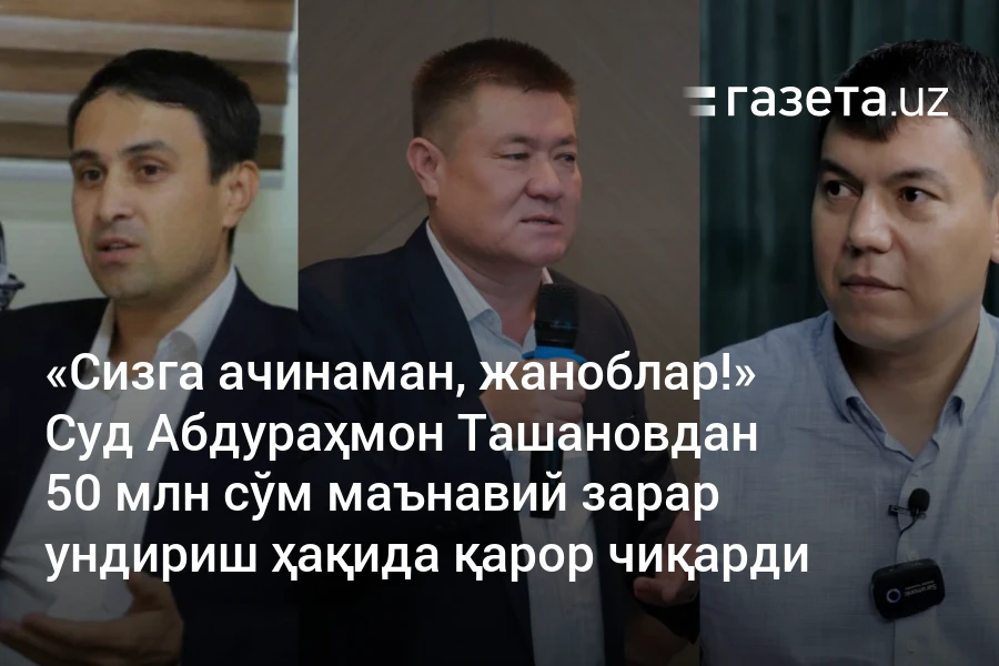Раззоқ Алтиев ва Отабек Нарзиев жавобгар Абдураҳмон Ташановдан пости бўйича раддия эълон қилиш, узр сўраш ва уни ўчириб ташлаш ҳамда маънавий зарар учун 200 млн сўм ундиришни талаб қилганди.
