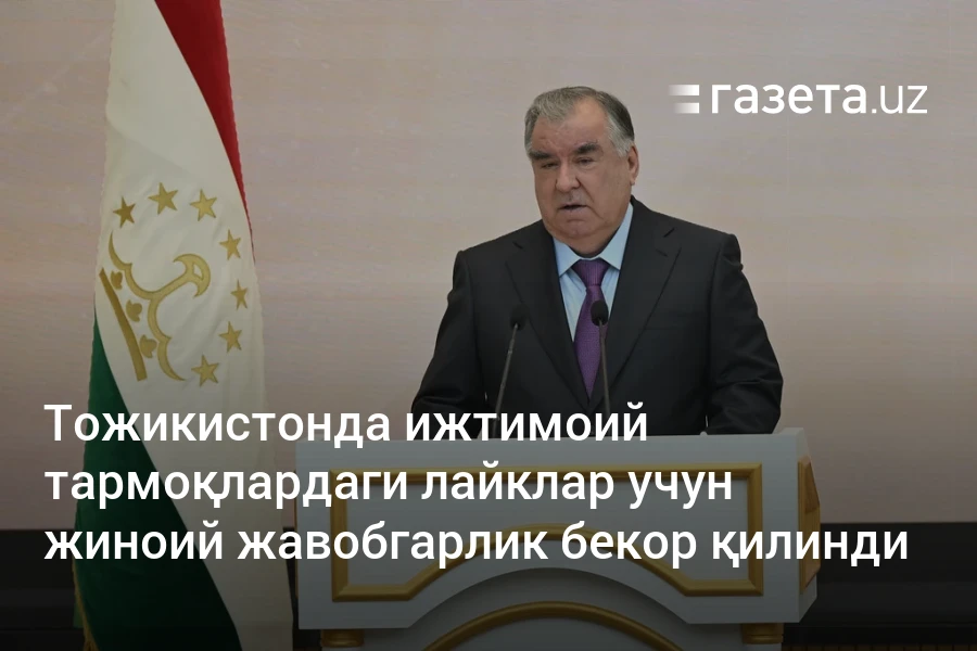 Тожикистон президенти Эмомали Раҳмон ижтимоий тармоқлардаги лайклар ва реакциялар учун жиноий жавобгарликни бекор қилувчи қонунни имзолади. Бу ҳақда давлат раҳбари сайтида хабар берилди.