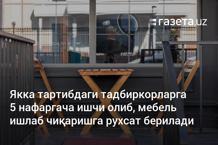 Ўзбекистонда якка тартибдаги тадбиркорларга 5 нафаргача ишчи олиб, мебель ишлаб чиқаришга рухсат берилади. Шунингдек, бу фаолиятни бошлаш, кенгайиш истагида юрган ёш тадбиркорларга 7 йилга 5 млрд сўмгача 18 фоизли кредит ажратилади. 8 та туманда мебелчилик марказларини ишга туширилади.