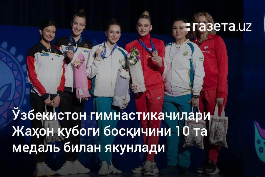 Тошкент шаҳрида 26 давлатдан 100 дан ортиқ спортчи иштирок этган бадиий гимнастика бўйича Жаҳон кубогининг учинчи босқичи якунланди. Ўзбекистон терма жамоаси юқори натижалар кўрсатиб, жами 10 та медални (2 та олтин, 5 та кумуш ва 3 та бронза) қўлга киритди, деб хабар қилди Миллий олимпия қўмитаси матбуот хизмати.