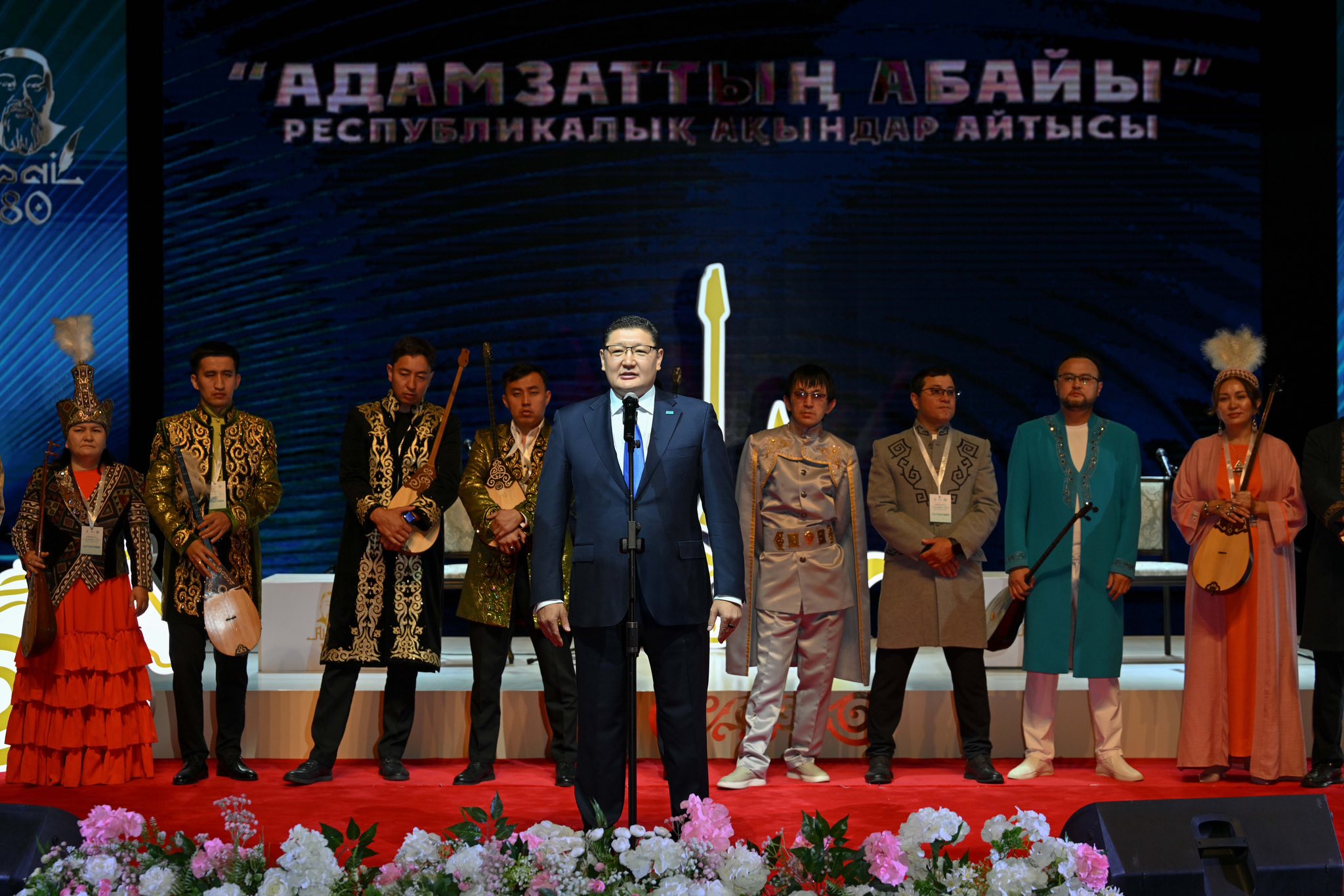 «Абай – казах, стоявший у истоков казахского Ренессанса, то есть эпохи Возрождения. А вершиной этого Ренессанса стали деятели Алаш. Земля Абая, Семей – это край первых. Первый театр, первая типография, первый банк, первый футбольный клуб, первый телеграф, первый цирк на казахской земле появились именно в Семее. Первый профессиональный казахский певец Әміре Қашаубаев также вышел из этой земли. Мы вправе назвать и Абая первым – основоположником казахской письменной литературы. Добро пожаловать на землю первопроходцев. Этот айтыс отличается от предыдущих. Почему? Потому что в этот раз собрались все сильнейшие акыны. Из 12 участников шестеро – обладатели «Алтын домбры». Среди нас также обладатель «Айтыстың ақтаңгері» Айбек Калиев. Такое масштабное состязание акынов в Семее не проводилось уже давно. Мы уверены, что сегодня акыны будут говорить веские, разумные слова и призывать народ к единству. Пусть юбилей Абая принесет всем благо!» – сказал глава региона.