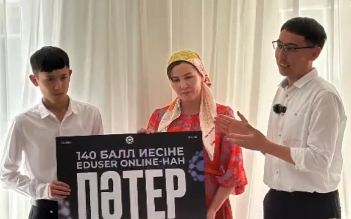 Ранее этот центр объявил в соцсетях, что выпускнику, набравшему 140 баллов, вручит как приз сертификат на квартиру, — и свое обещание организаторы выполнили. Сертификат торжественно передали Жанибеку и его маме.